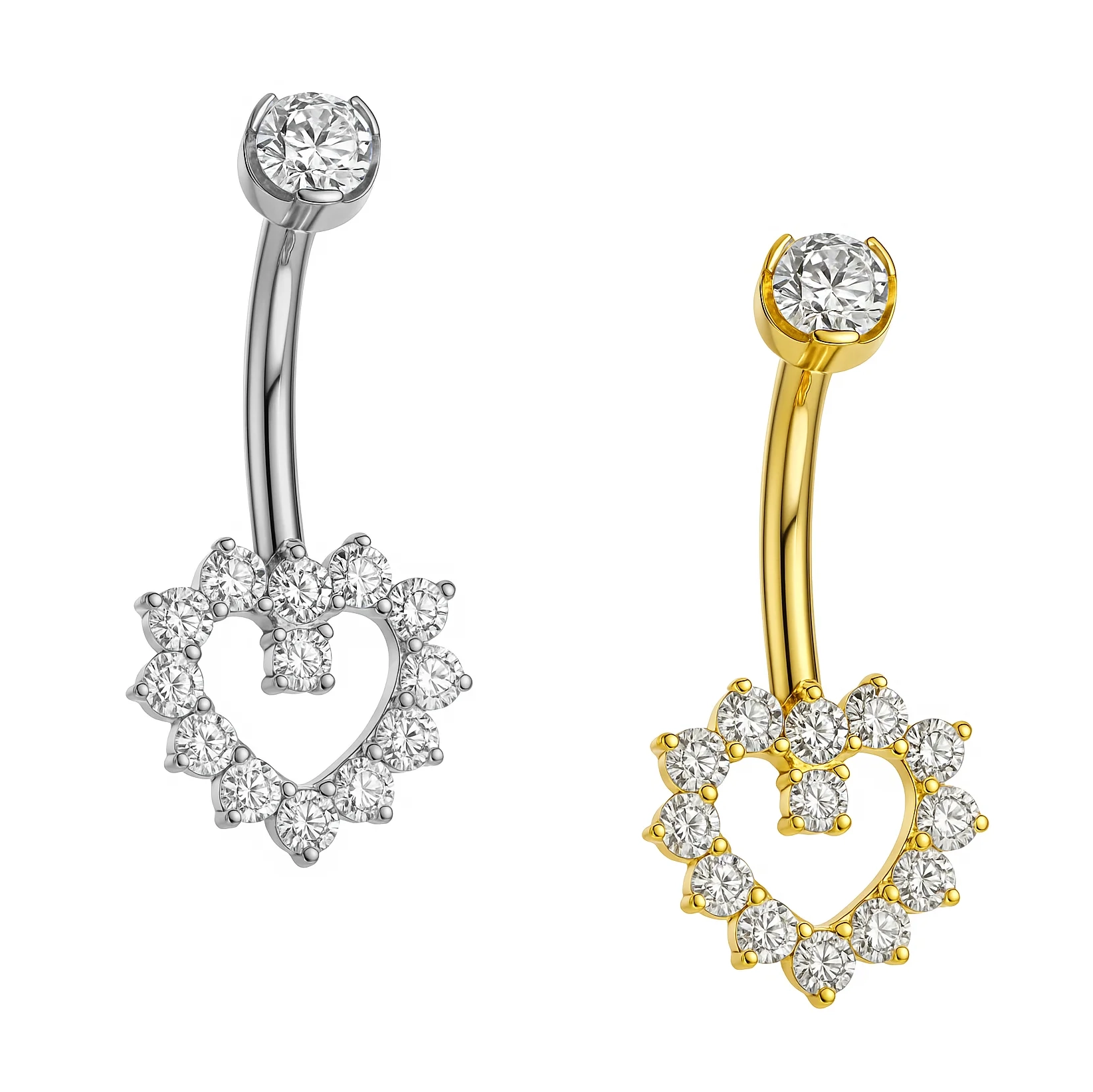 Piercing umbigo coraçao cravejado